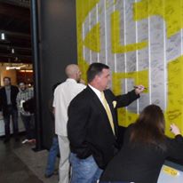 Signing the top fundraiser wall at LiveSTRONG Foundation headquarters in Austin, Texas